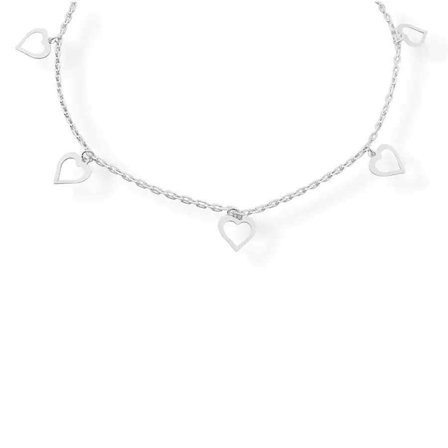 Delicada e cheia de charme, essa tornozeleira traz pequenos corações vazados que adicionam um toque de feminilidade e leveza ao seu estilo. Uma peça marcante na sutileza, perfeita para realçar sua presença com graça e elegância.